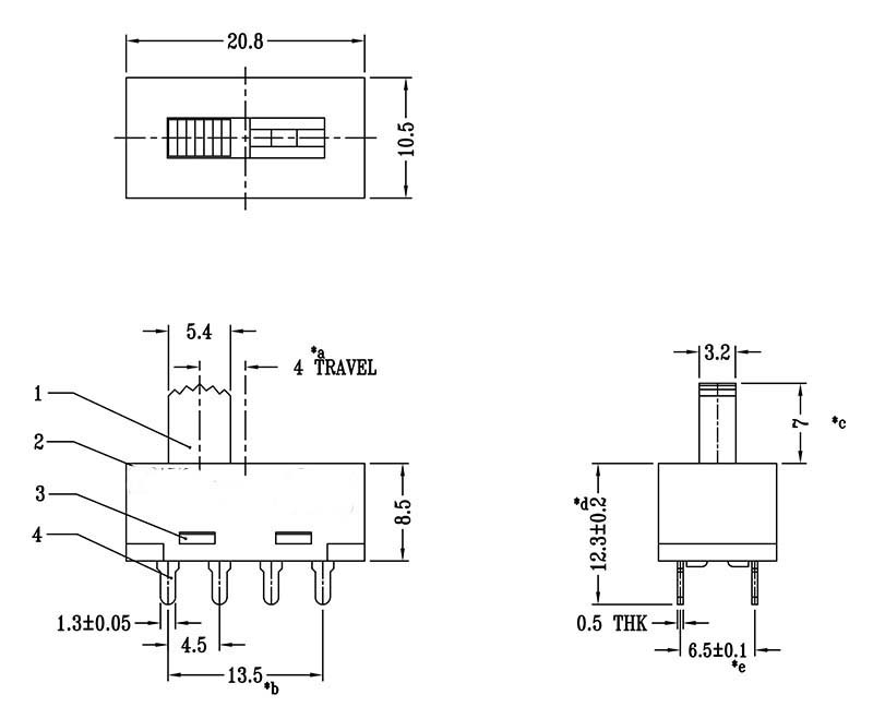 三档拨动开关 SS-23H21-FB 塑胶拨动开关