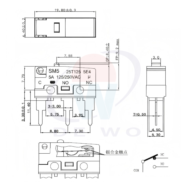 SM5-W00PL-150-3弹片型微动开关